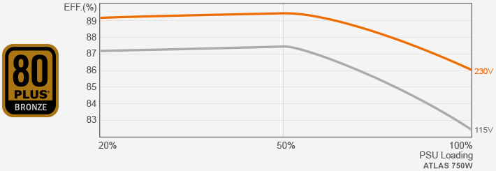 La serie ATLAS de COUGAR es una fuente de alimentación de alta calidad que ostenta con orgullo la certificación 80 PLUS Bronze, lo que garantiza una eficiencia de