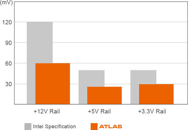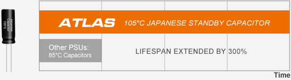 El ATLAS es muy duradero y proporciona un suministro de energía continuo e impecable con capacitores de reserva japoneses de 105 °C constantemente confiables.