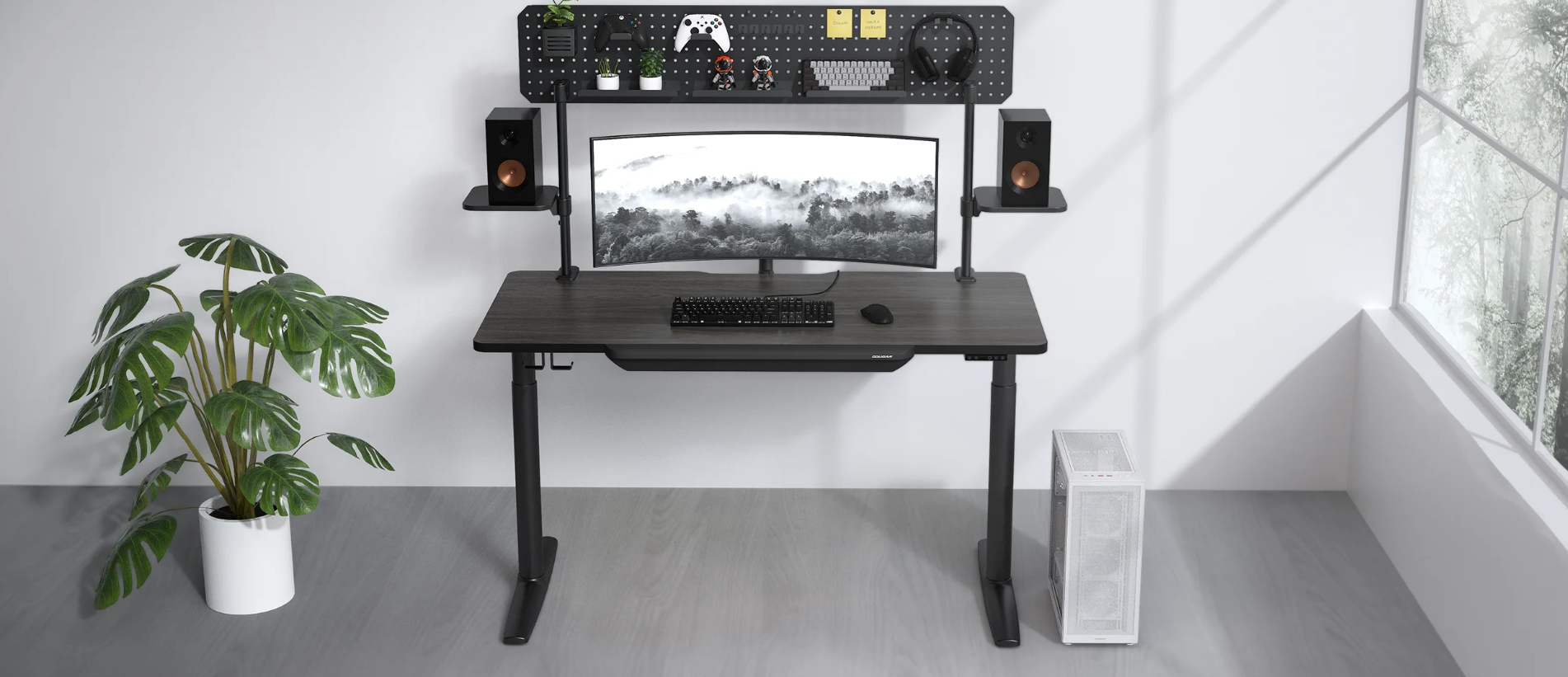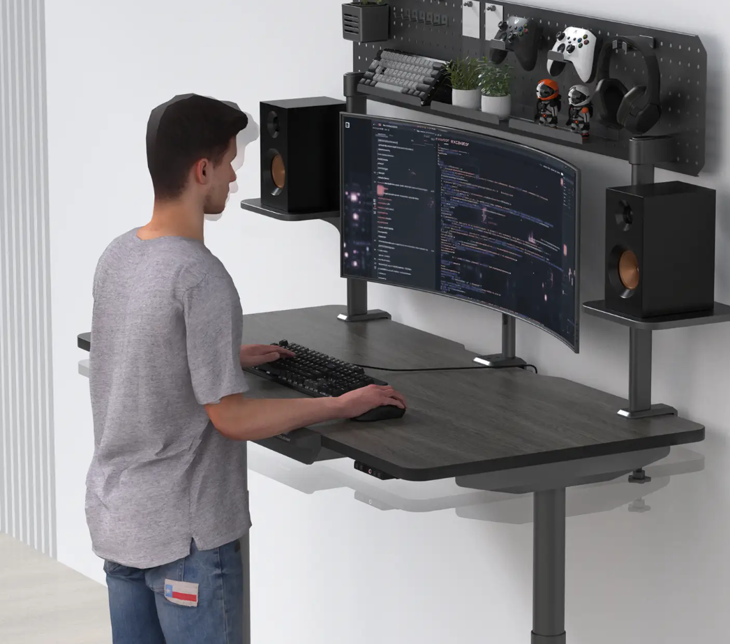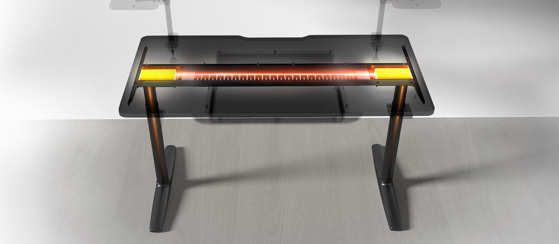 El modo Salud se activa con solo pulsar un botón en el panel de control. Este modo ajusta sutilmente la altura del escritorio 12 cm durante 3 minutos, con una pausa de 2 minutos en cada posición. El ciclo casi imperceptible te mantiene en movimiento para reducir el esfuerzo físico, sin interrumpir tus juegos, trabajo ni creatividad.