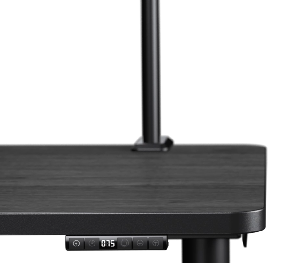 El panel de control está completamente ubicado debajo del escritorio, lo que garantiza que no sobresalga del borde y elimina el riesgo de contacto accidental. Ofrece un funcionamiento inteligente con dos ajustes de altura preestablecidos y una visualización de la altura en tiempo real.