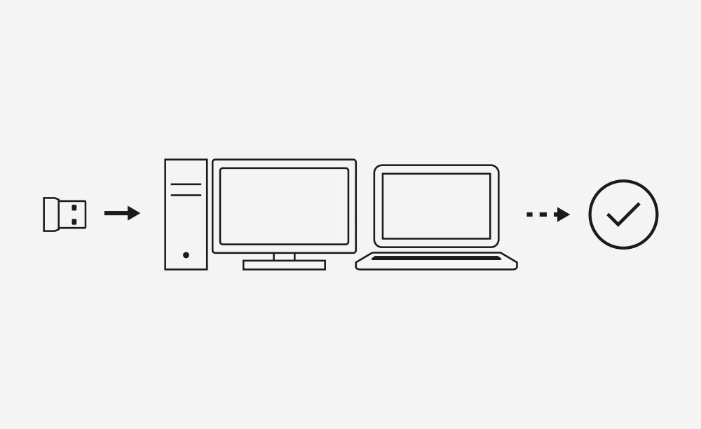 Un simple receptor USB Plug and Play ofrece una estable conexión inalámbrica de 2,4 GHz con un radio de acción de 10 m. Esto significa un escritorio despejado y sin cables, y la libertad de organizar los dispositivos como se quiera.
