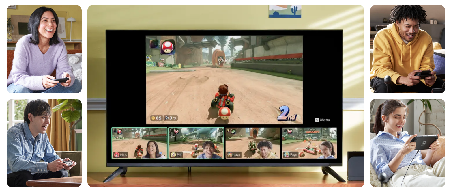 Pásalo en grande con juegos nuevos y exclusivos para Nintendo Switch 2, como Mario Kart World. Además, ¡podrás seguir jugando a los títulos de Nintendo Switch que ya tengas**!