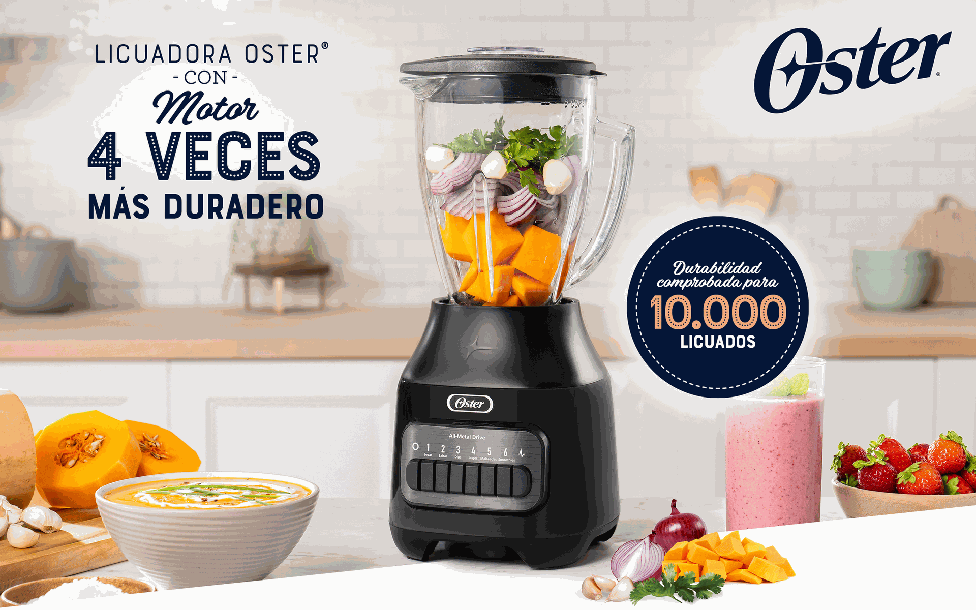 La licuadora Oster® cuenta con 6 velocidades y pulso para Mezclar tus bebidas y aperitivos favoritos.