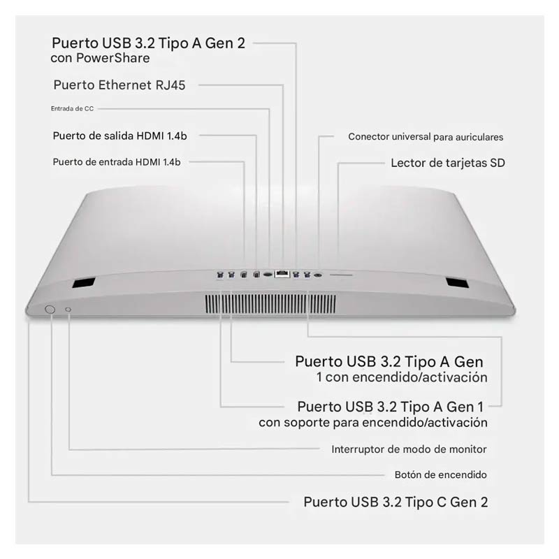 DEC24250-5352WHT-PUSComputadora AIO Dell Inspiron 5352 24" Core 5 120U 16GB RAM 512GB SSD W11 Home Teclado Ingles