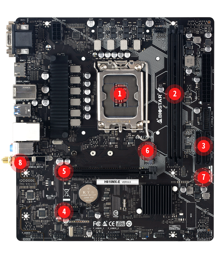 Con el chipset Intel® H610 y los procesadores Intel® Core™ i9/i7/i5/i3 de 12th generación y los procesadores Intel® Pentium®, estarás inmediatamente a la vanguardia del campo de batalla, impulsado por una potencia y un rendimiento alucinantes. Desde la creación de contenido hasta los juegos, el chipset Intel H610 te proporciona la potencia y el rendimiento que necesitas.