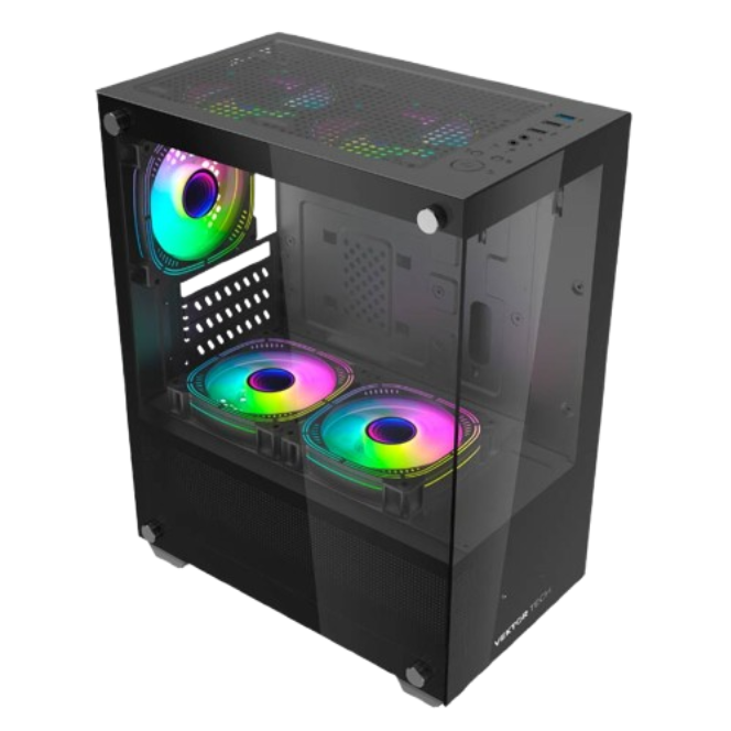 El Case Gaming VektorTech SGM-680 es una mini torre elegante y funcional, diseñada para configuraciones compactas con alto flujo de aire. Su panel lateral de vidrio templado permite mostrar el interior del equipo, mientras que su diseño optimizado ofrece compatibilidad con placas Micro-ATX y Mini-ITX, ideal para setups gaming o estaciones de trabajo compactas.