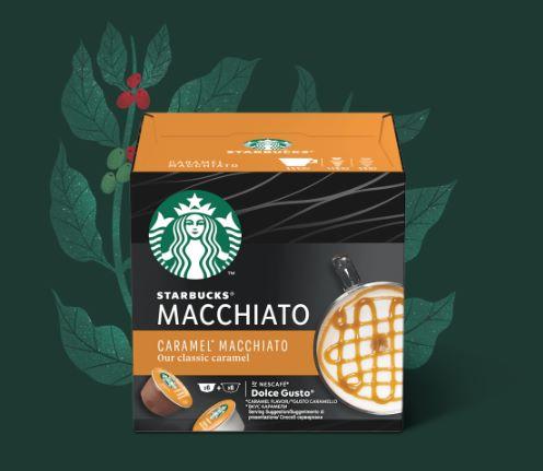 Disfruta de tu café Caramel Macchiato de Starbucks® de una manera sencilla y en casa con las cápsulas de Starbucks® Caramel Macchiato y leches compatibles con cafeteras NESCAFÉ® Dolce Gusto
