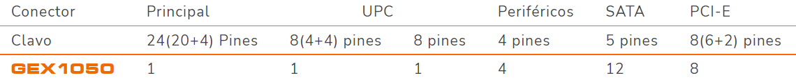 El diseño LLC, DC-DC y Tri-Sense (3,3 V, 5 V y 12 V) de GEX1050 se ha creado para proporcionar salidas de alta calidad, con una regulación de voltaje extremadamente estricta del 2 % para ofrecer un funcionamiento más estable.