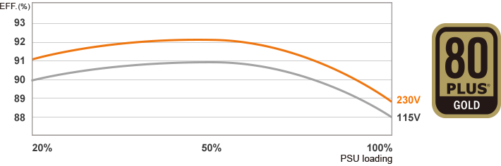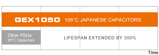 GEX1050 presenta un diseño altamente eficiente que supera el estándar 80Plus Gold, para ayudarlo a ahorrar dinero en su factura de electricidad.