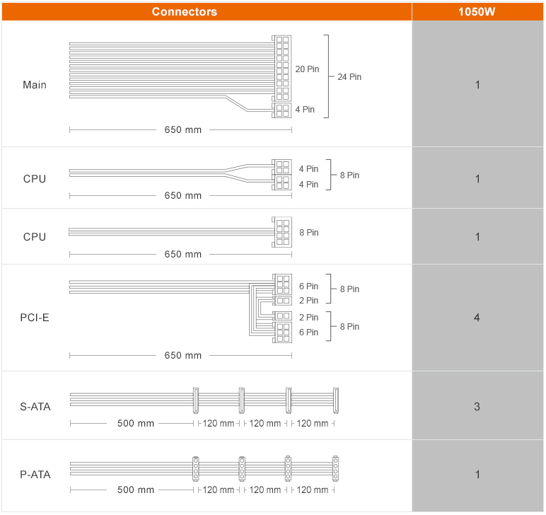 COUGAR GEX1050 es una fuente de alimentación de alta calidad con certificación 80Plus Gold con suministro de energía impecable en entornos de 40 °C. Eficiente, silencioso y duradero, GEX1050 es la mejor respuesta para quienes buscan la mejor relación calidad-precio en PSU.