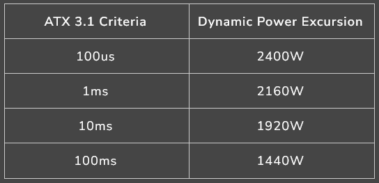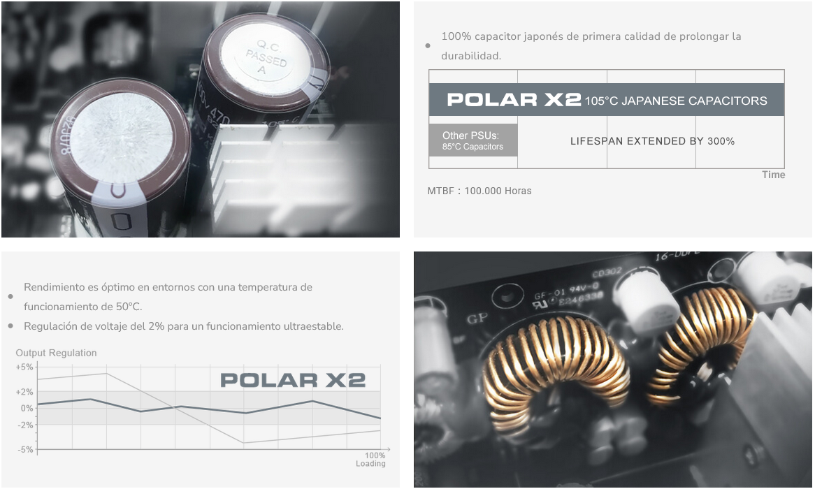 El Polar X2 supera las cuatro estrictas pruebas de excursión de potencia de la Guía ATX 3.1 de fuentes de alimentación, en las cuales el pico de consumo de potencia debe soportar hasta el 200% de la potencia nominal durante 100μs.
