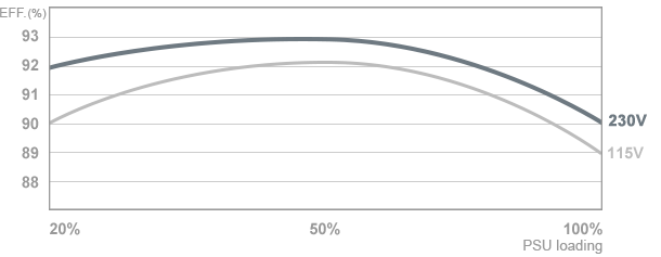 Con certificación 80Plus Platinum asegura el nivel de eficacia hasta un 92% a 115Vac.