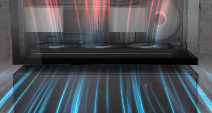 El espacio flotante de la serie CFV235 es un vacío discreto completamente tridimensional suspendido dentro del chasis. 270° de entrada de aire espaciosa y sin obstáculos ofrece una ventilación mayor que los diseños cerrados donde más se necesita.
