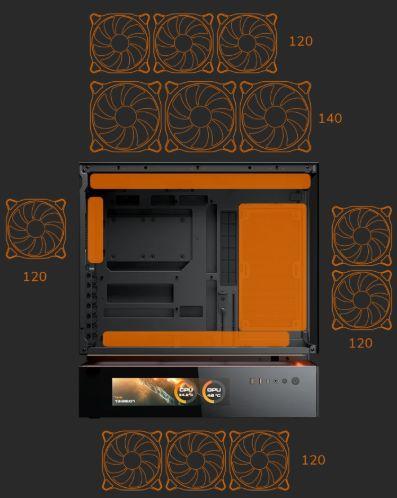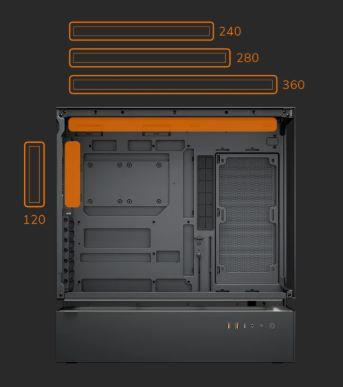 - Frontal: 360mm / 280mm / 240mm / 140mm / 120mm