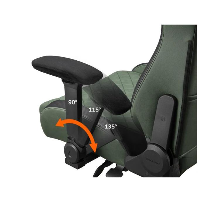 Originalmente desarrollados para la silla gaming oficial COUGAR x VCT 2024 y rigurosamente probados en el ámbito de los esports, los reposabrazos plegables 4D sostienen los brazos cuando es necesario o pueden plegarse completamente hacia atrás, dejando espacio para quienes prefieran la máxima movilidad de los brazos.