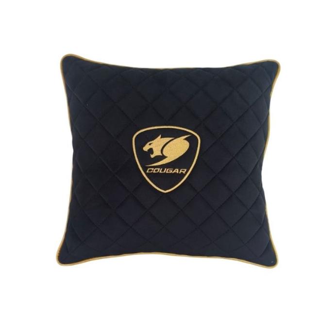 El Cojín Cougar Cushion Lander Negro/Dorado, un cojín gamer grande y decorativo para silla de escritorio o gaming. Suave al tacto y con apariencia “premium”, en color negro con detalles dorados.