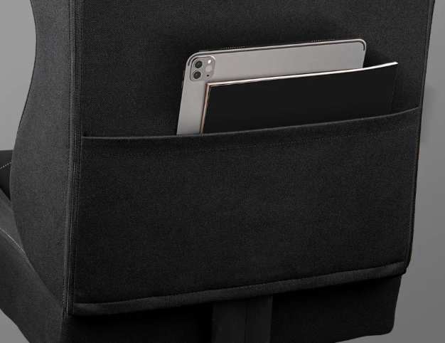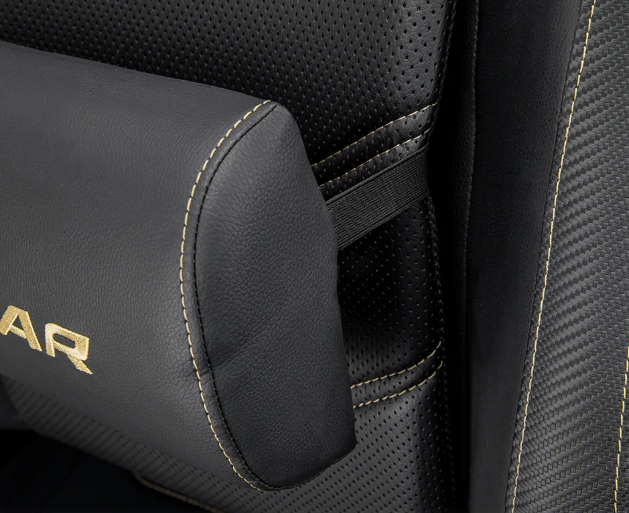 Una correa discreta asegura la almohada lumbar sin interrumpir la estética limpia y aerodinámica.