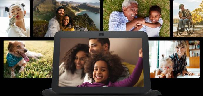 Usa Amazon Photos para convertir tu pantalla de Inicio en un marco digital con Alexa. Disfruta de tus momentos favoritos y fotos que hayan compartido amigos y familiares en una presentación de diapositivas o en rotación con otro contenido de la pantalla de Inicio. Las imágenes se verán geniales bajo cualquier iluminación gracias al color autorregulable.