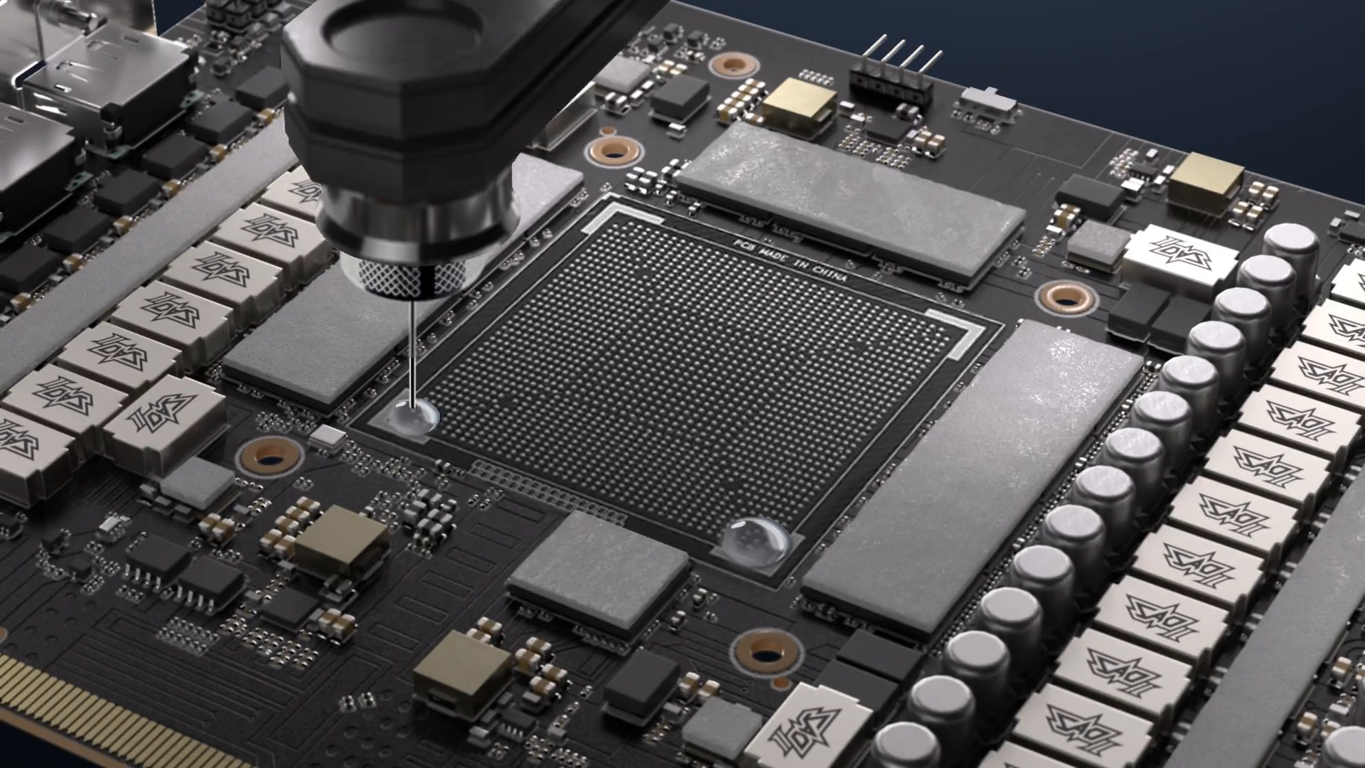 El ASUS GPU Guard aplica adhesivo para asegurar las cuatro esquinas y reducir el riesgo de grietas