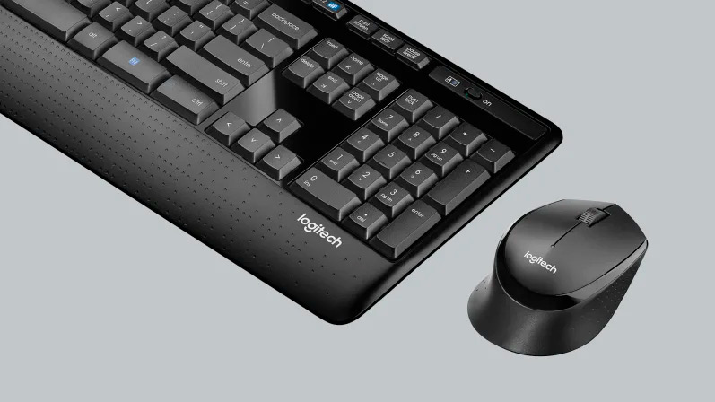 Te presentamos la combinación inalámbrica de tamaño normal con confort mejorado y baterías que duran meses. Un mouse contorneado para usar con la mano derecha y un teclado de tamaño normal con reposamanos incluido te permiten realizar todo tipo de tareas confortablemente durante toda la jornada.