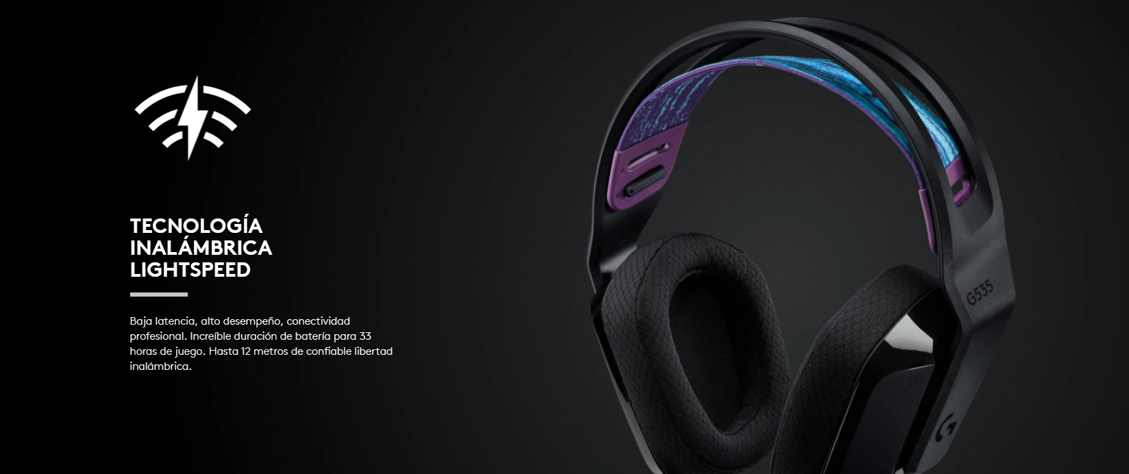 Los G535 se diseñaron para un desempeño de baja latencia, libertad sin cables y confort prolongado para todas tus sesiones de juego. Disfruta de la tecnología inalámbrica avanzada LIGHTSPEED, 33 horas de batería Depende del uso y de los dispositivos. La duración de la batería se basa en un volumen de audífonos configurado en 50%. y transductores de 40 mm para un sonido nítido y contundente. Un peso de sólo 236 gramos, una diadema ajustable y almohadillas de espuma viscoelástica suave garantizan confort prolongado.