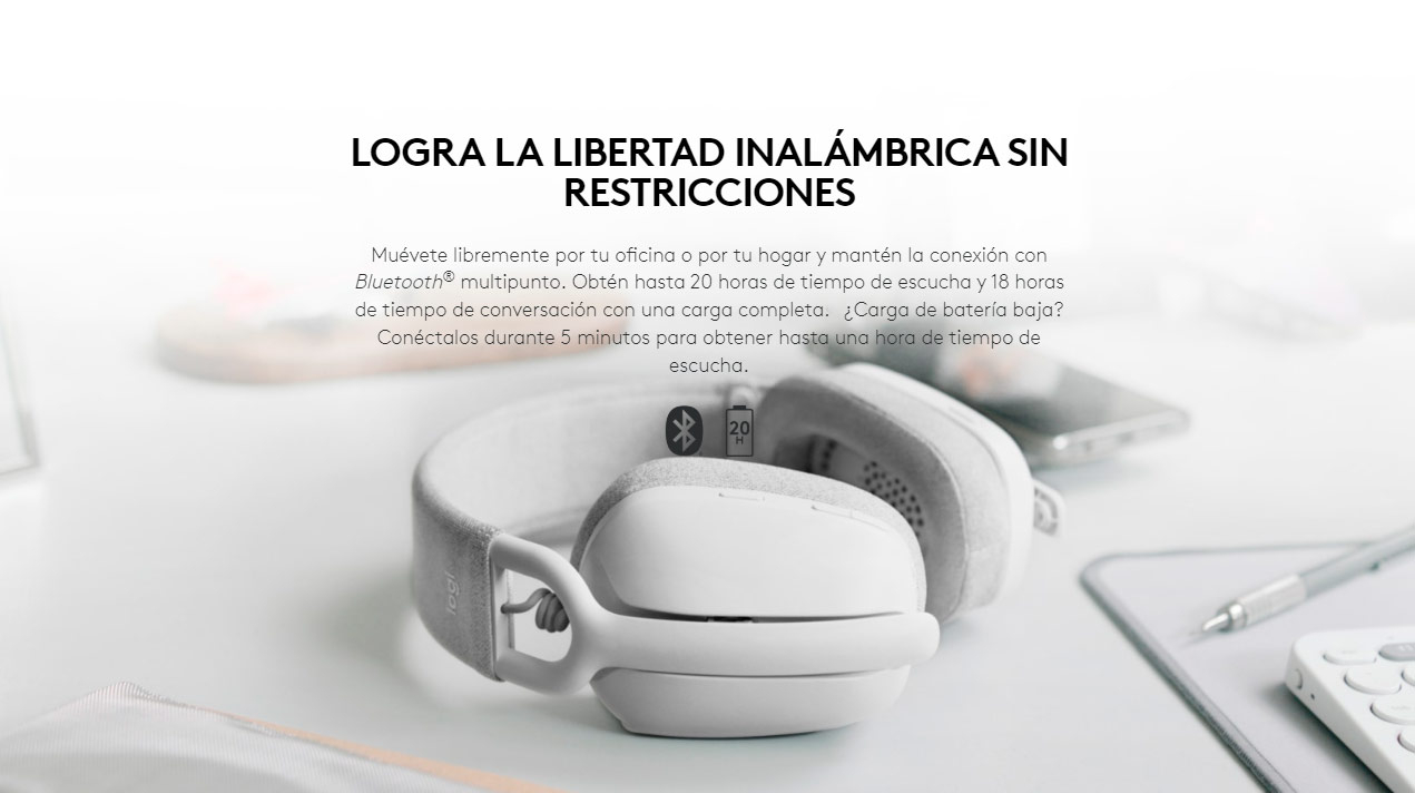 Audífonos tipo Headset Logitech Zone Vibe 100 Inalámbricos con Micrófono Blanco