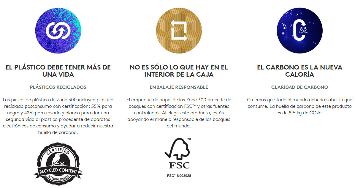Los Zone 300 son los auriculares inalámbricos esenciales con excelente audio que te dan la libertad de moverte y mantener la conexión mientras trabajas o simplemente escuchas. Los dos micrófonos con cancelación de ruido y las bocinas mejoradas te permiten oír y que te oigan con claridad. Piezas de plástico fabricadas con un mínimo de 42% de plástico reciclado.