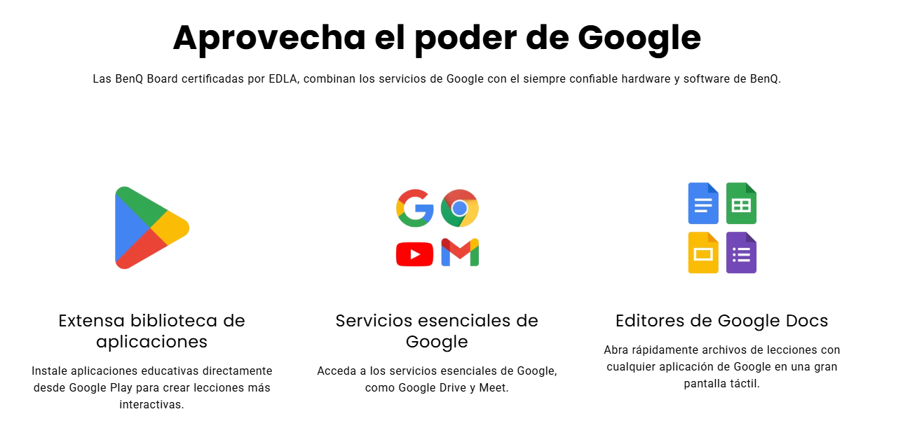 - Tarjeta BenQ con certificacion EDLA para servicios de Google