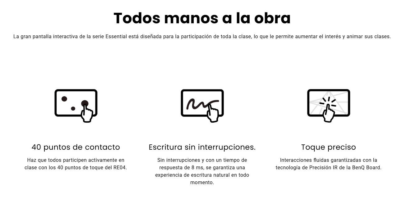 - Resolución 4K UHD (3840 x 2160) Pantalla Interactiva IR