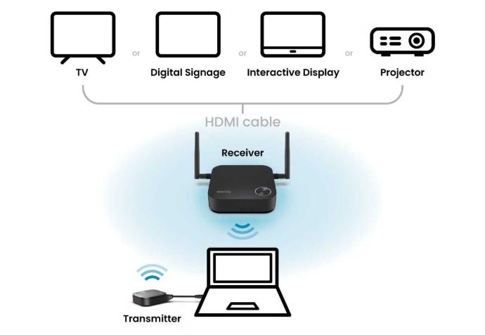 No hace falta una configuración de red compleja ni ayuda de IT. El receptor y transmisor se emparejan automáticamente: solo conécte y muestre para empezar a presentar de inmediato.