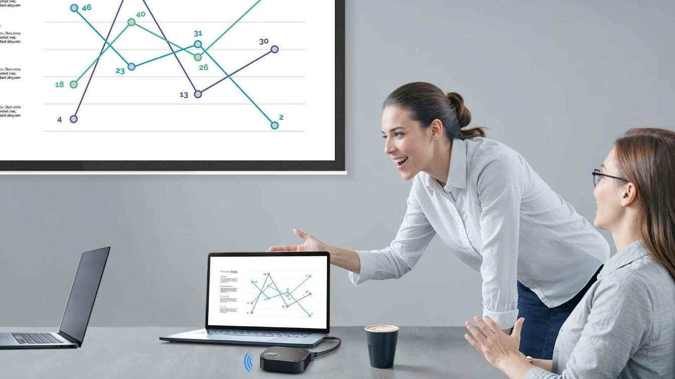 InstaShow permite presentaciones inalámbricas instantáneas plug-and-play, sin apps, controladores ni configuración de red. Incluso los invitados pueden acceder a presentaciones profesionales con solo pulsar un botón.