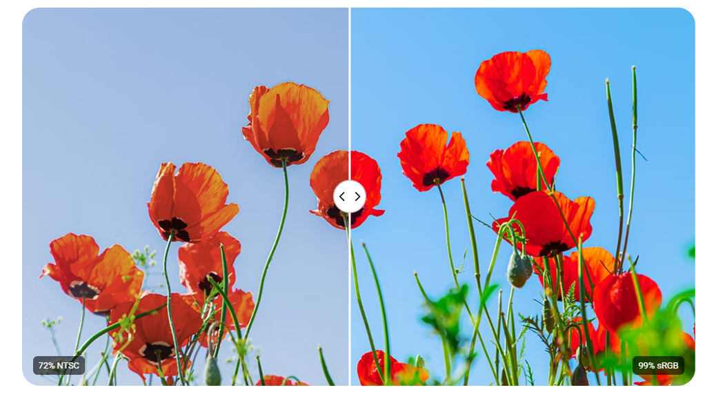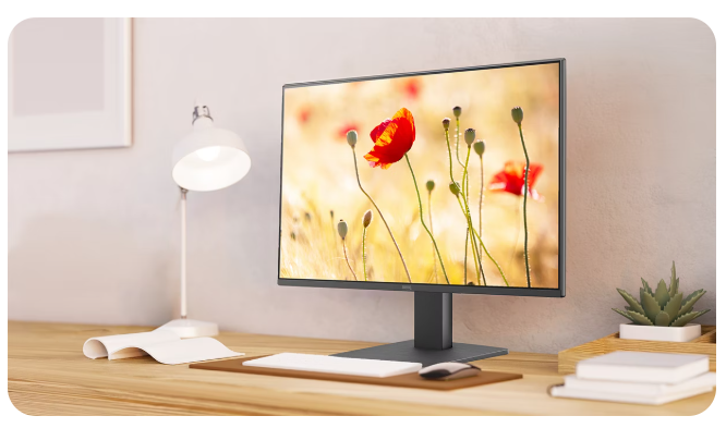 La tecnología IPS (In-Plane Switching) ofrece una reproducción precisa de colores e imágenes desde cualquier ángulo. Además, el 99 % del espacio de color sRGB garantiza visuales vibrantes para películas, juegos y páginas web. Mayor claridad y más detalles te permiten disfrutar de una visualización más cómoda.