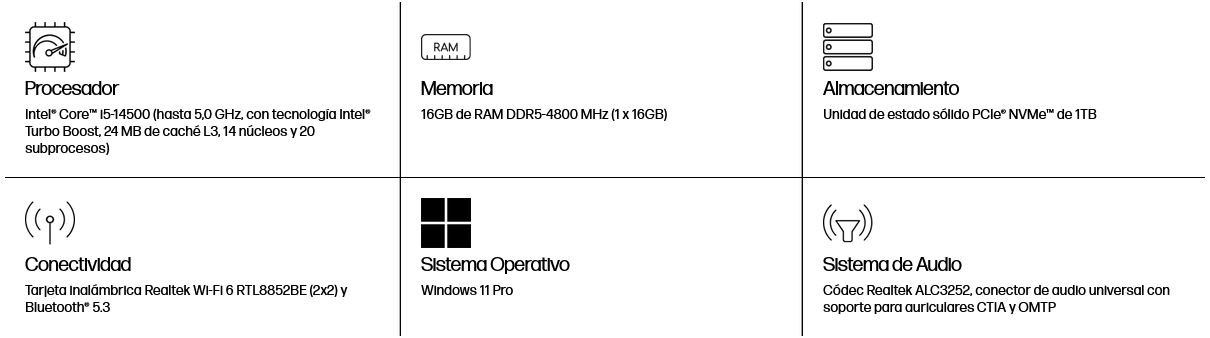 Computadora HP ProDesk 400 G9 i5-14500 16GB RAM 1TB SSD Negro W11 Pro Teclado Español