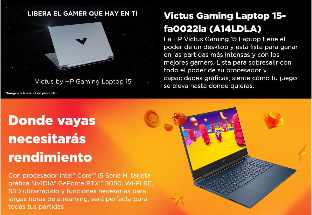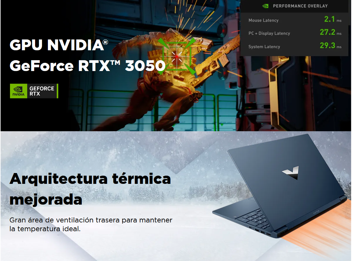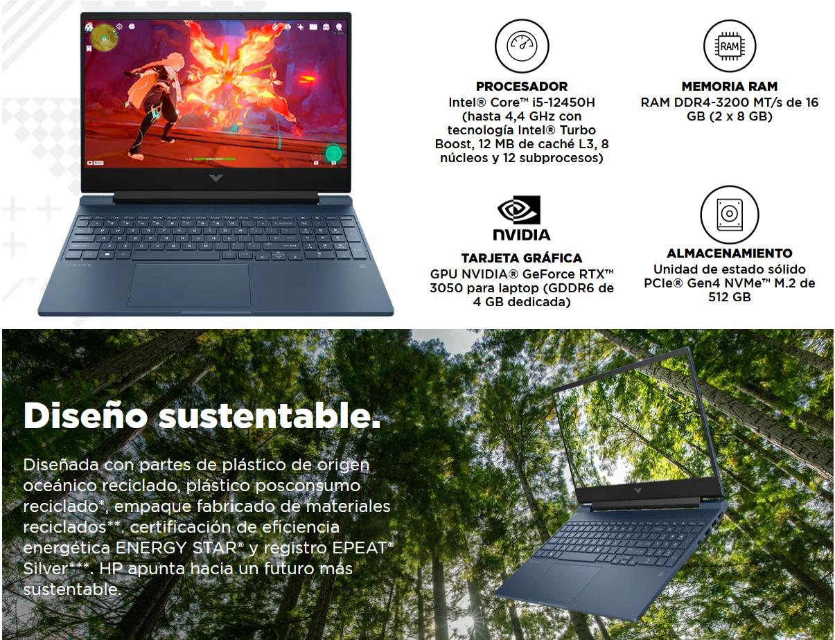 Laptop HP Victus 15-fa0022la 15.6" i5-12450H 16GB DDR4 512GB SSD RTX 3050 4GB W11 Home Azul Oscuro Teclado Español