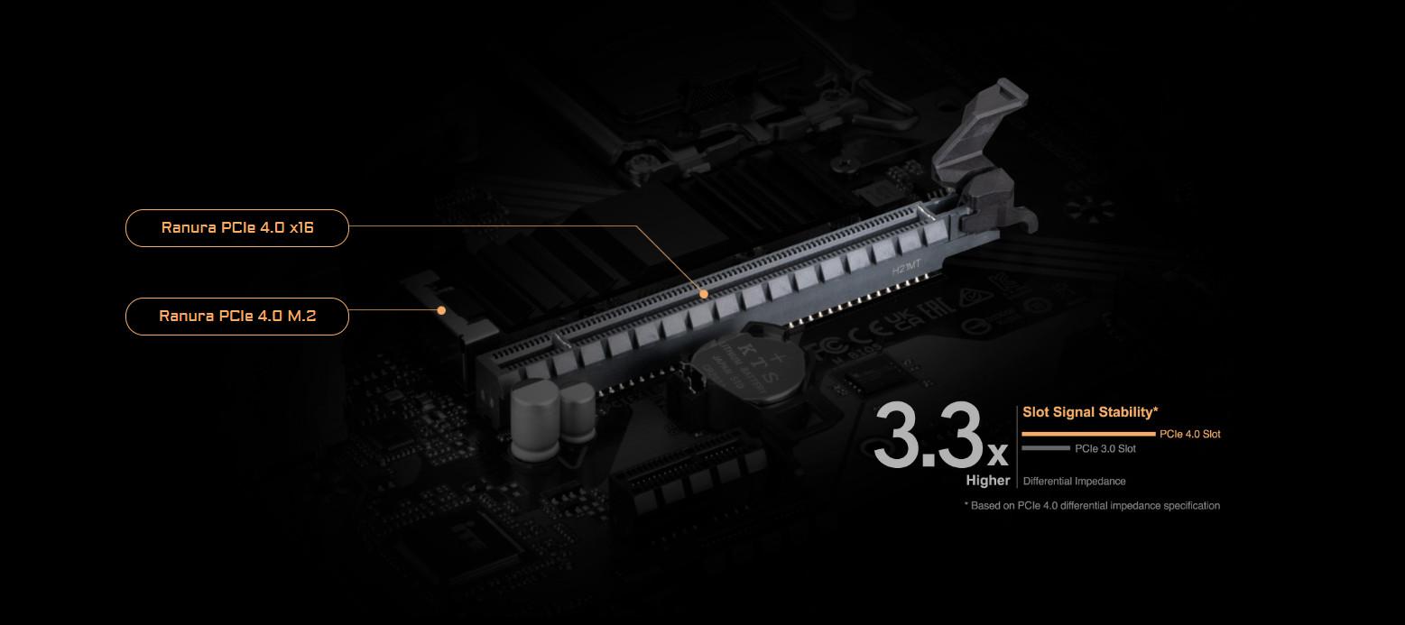 Las placas base GIGABYTE B760 están listas para funcionar con los dispositivos PCIe 4.0 que se espera que experimenten el triple de ancho de banda que los dispositivos PCIe 3.0 actuales. Para alcanzar alta velocidad y mantener una buena integridad de la señal, el departamento de I+D de GIGABYTE utiliza PCB de baja impedancia para proporcionar el máximo rendimiento.