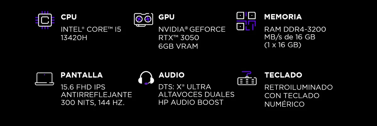 - Procesador Intel Core™ i5-13420H @ 4.6 GHz Turbo Boost