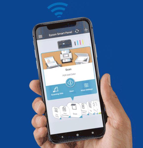 La conectividad Wi-Fi Dual Band y Ethernet proporciona una conexión estable para que imprimas directamente desde tu teléfono móvil con la aplicación Epson Smart Panel.