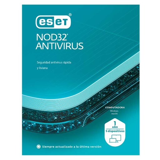 Licencia ESET NOD32 Antivirus Para 5PC 1Año ***FISICA***