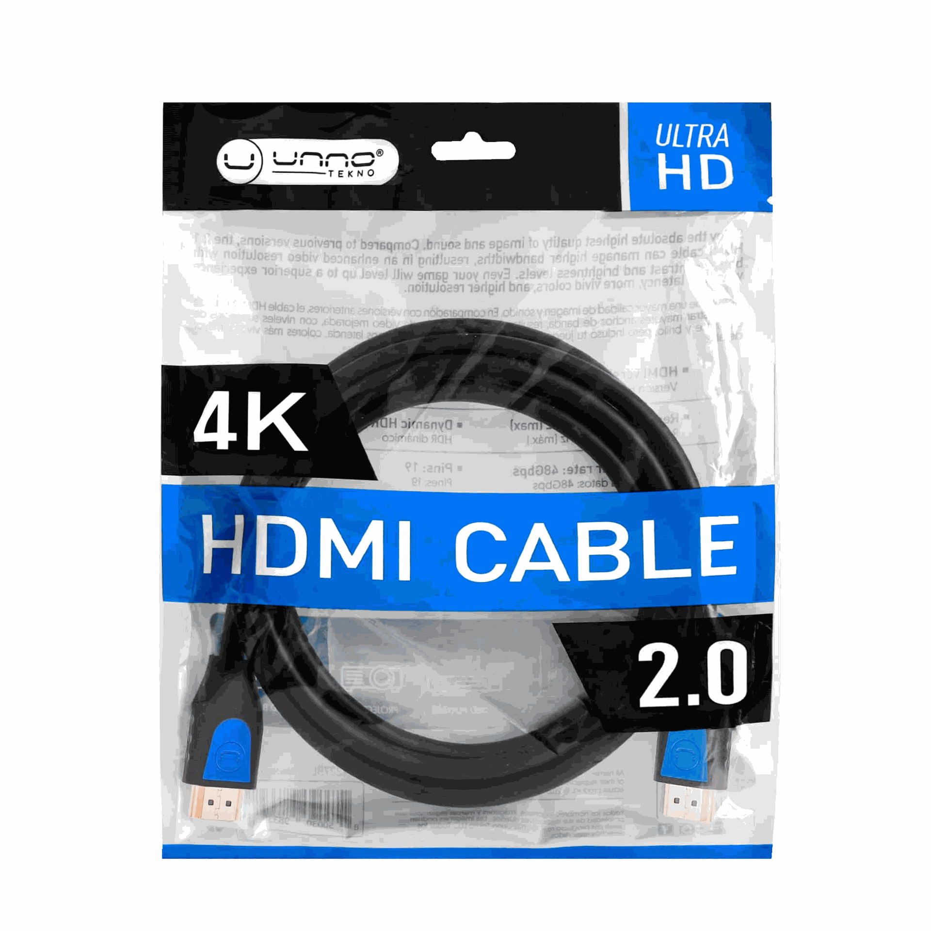 Cable HDMI 2.0 4K Unno Tekno CB4226BL 1.8 Metros Macho-Macho Negro
