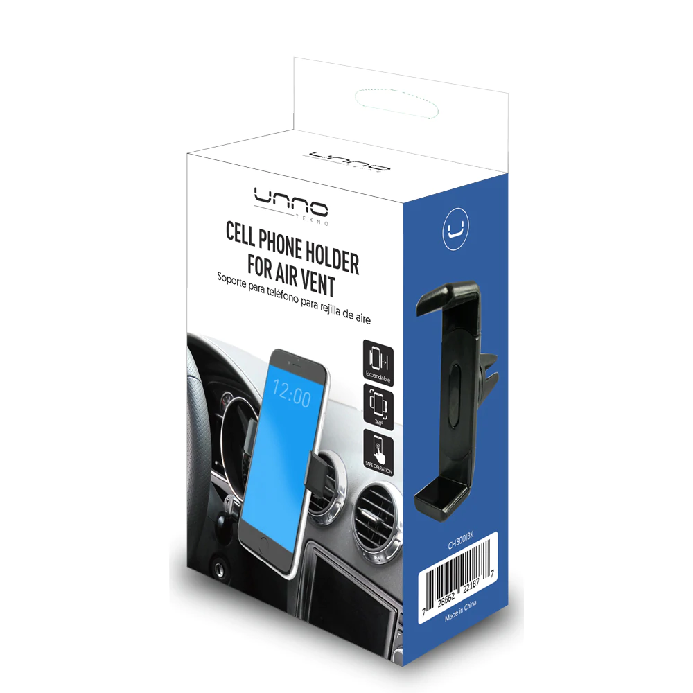 Base para Celular Unno Tekno CH3001BK para Ventilas de Aire Acondicionado
