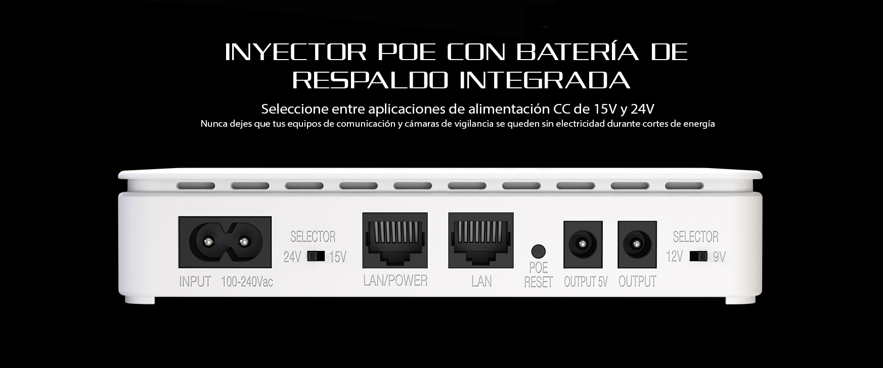 - Tipo de salida PoE + USB-A + USB Tipo-C + 2 conectores CC