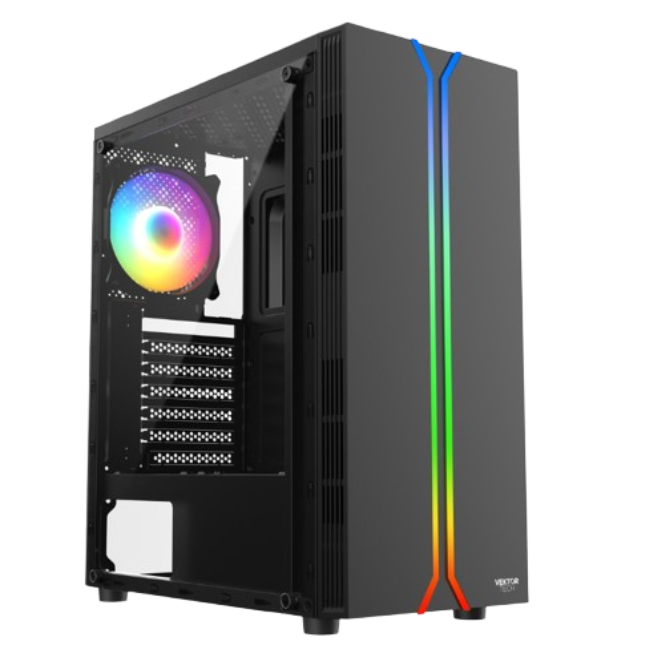 El Case Gaming VektorTech EZQ1 combina diseño moderno con funcionalidad, ideal para armar una PC compacta con estilo. Su panel lateral de vidrio templado permite mostrar los componentes internos, mientras que su estructura Micro ATX asegura compatibilidad con configuraciones equilibradas para gaming o trabajo.