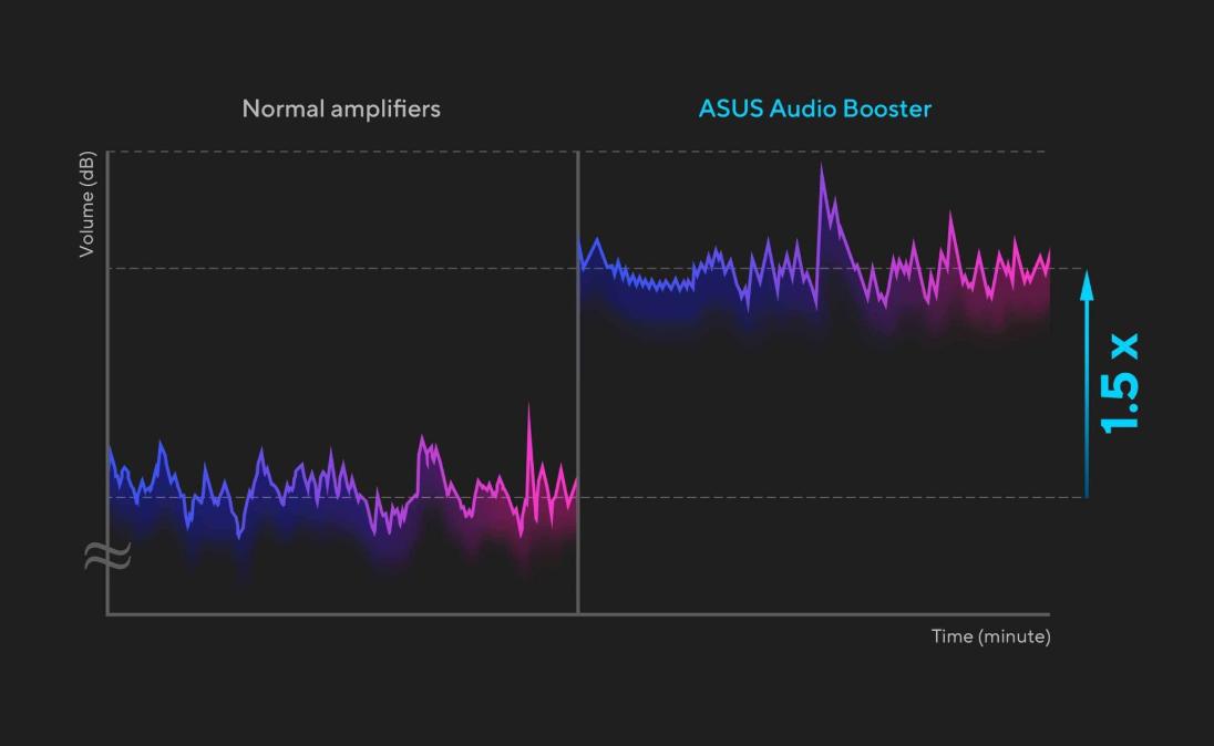 ASUS Audio Booster utiliza algoritmos de audio únicos para aumentar el volumen de audio hasta 1,5 veces y llevar tu experiencia de audio al siguiente nivel.