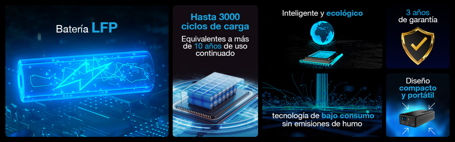 - Ciclos de batería de 3000 al 80% mas de capacidad