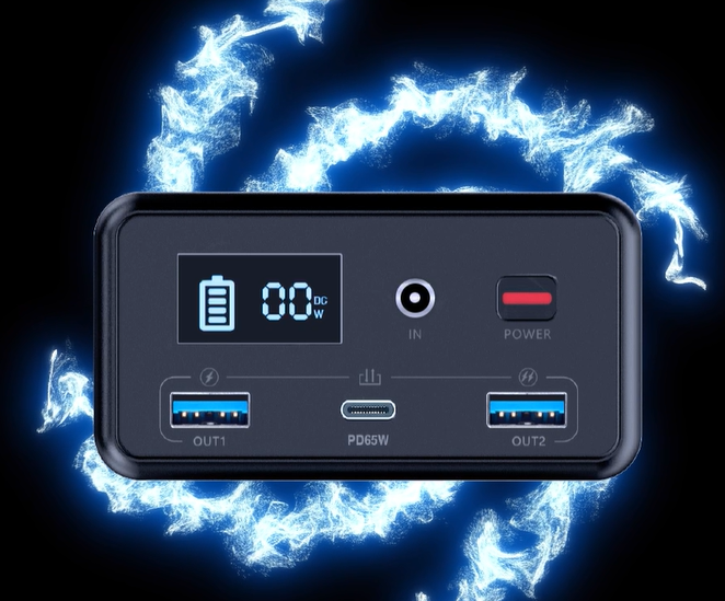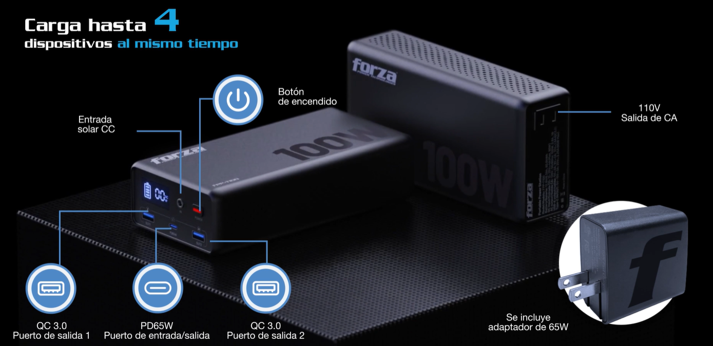 La central de energía se recarga en 1 hora mediante el panel solar y en 1,2 horas con el cargador de 65W incluido.
