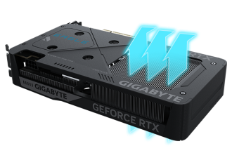 El sistema de refrigeración WINDFORCE ofrece un rendimiento térmico excepcional gracias a una combinación de tecnologías de vanguardia. Cuenta con gel termoconductor de calidad servidor, innovadores ventiladores Hawk con giro alternativo, tubos de calor de cobre compuesto, una placa de cobre, ventiladores activos 3D y refrigeración de pantalla.