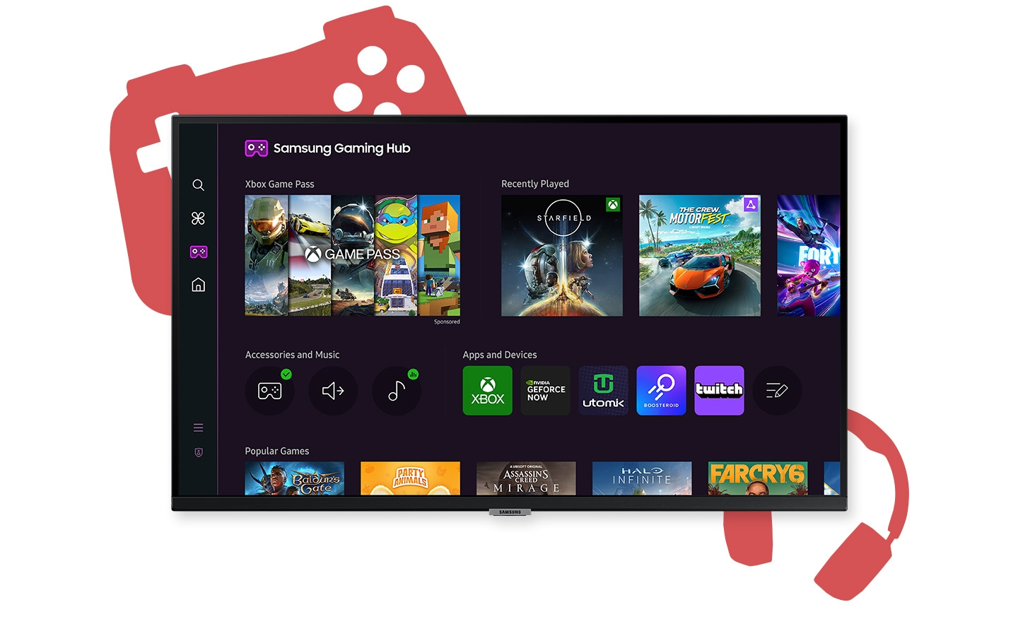 Con el Smart Monitor M5, disfruta de Samsung Gaming Hub que es el hogar definitivo para los juegos. Disfruta al instante los mejores títulos de los principales socios de streaming, sin necesidad de un PC o una consola. Descubre nuevos juegos o revisita tus favoritos en un solo lugar.
