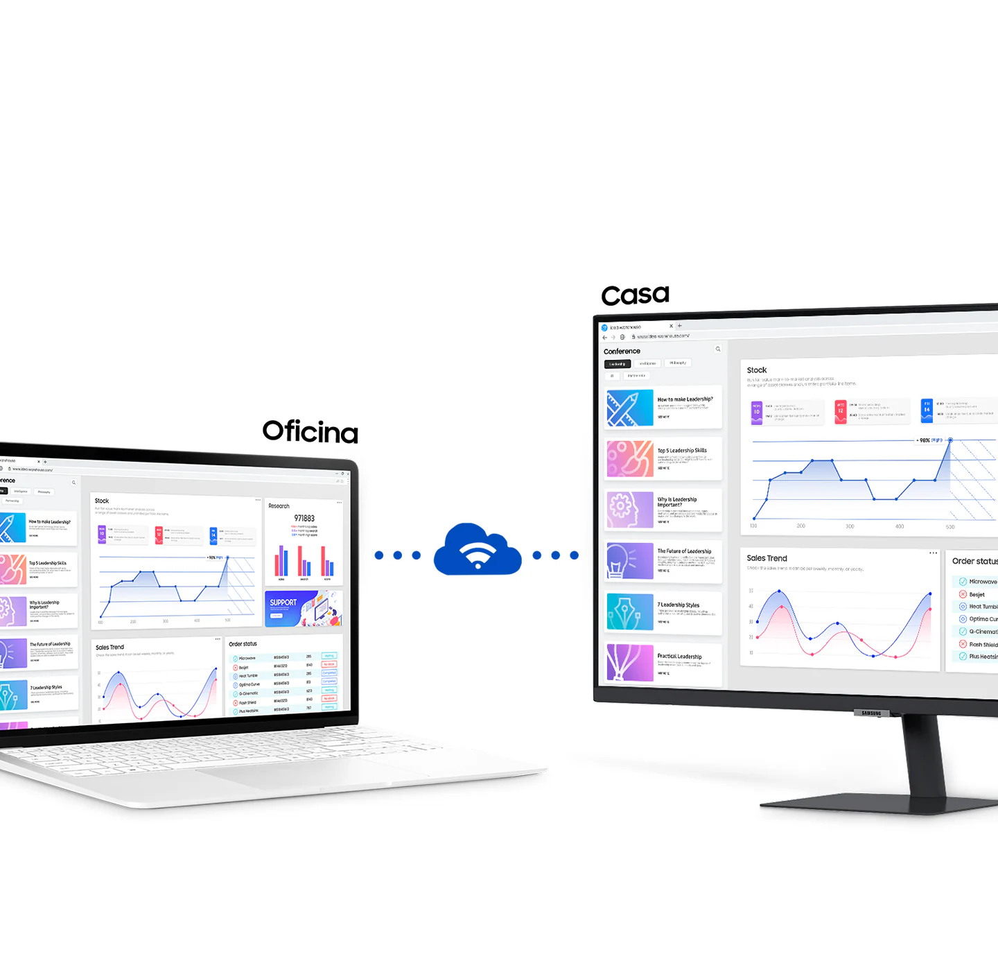 Accede a tu PC y contrólalo a distancia, o trabaja directamente en el monitor. Las aplicaciones de productividad integradas, como Microsoft 365, te permiten prescindir del PC para trabajar en un entorno más sencillo y optimizado.