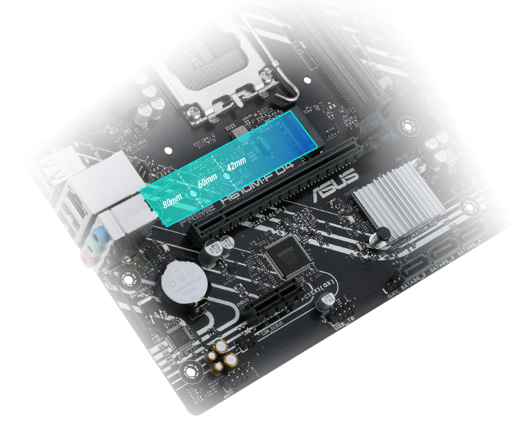 Prime H610M-F D4 ofrece una ranura M.2 que admite velocidades de transferencia de datos de hasta 32 Gbps a través de PCIe 3.0, lo que permite tiempos de arranque y carga de aplicaciones más rápidos con el sistema operativo o las unidades de aplicaciones.