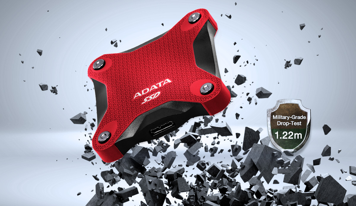 El SD620 está protegido por una funda de silicona antichoque que proporciona una amortiguación elástica superior a la de las unidades SSD externas estándar. Ha superado las estrictas pruebas de caída MIL-STD-810G 516.6 y no sufrirá daños aunque se deje caer desde 1,22 metros. La durabilidad de la SD620 permite transportarla sin problemas.